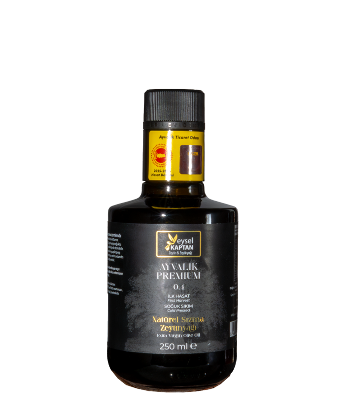 PREMIUM AYVALIK 0,4, tadım sırasında taze çimenin keskinliği ile enginarın hafif acılığını birleştirir. Erken hasadın ve yüksek antioksidan içeriğinin doğal sonucu olarak, boğazda belirgin ve keyifli bir yakıcılık hissedilir; bu yoğunluk, zeytinyağının gücünün en net kanıtıdır. Yoğun aroması ve güçlü yapısı sayesinde bu zeytinyağı, tadını baskın hissetmek istediğiniz salatalarda, ızgara et/balık ve çorbaların üzerinde son dokunuş olarak kullanılması için idealdir. Veysel Kaptan PREMIUM AYVALIK 0,4, zeytinyağı lezzetinde güç, karakter ve yoğunluk arayanların ilk tercihidir.